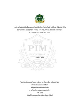 Other title: - Developing Selection Tools for Insurance Broker Position : A Case Study of ABC CO., LTD
