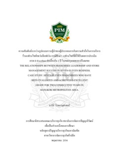 ความสัมพันธ์ระหว่างรูปแบบภาวะผู้นำของผุ้ประกอบการกับความสำเร็จในการบริหารร้านแฟรนไชส์เซเว่นอีเลฟเว่น กรณีศึกษา : แฟรนไชส์ซี่ที่ได้รับผลการประเมินเกรด E-Excellent ต่อเนื่องกัน 2 ปี ในเขตกรุงเทพมหานครและปริมณฑล / อารีย์ โรจนานุศาสตร์ by