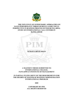 The Influence of Supervisory Approaches on Sales Performance Through Regulatory Focus Perspective in Business Process Outsourcing (BPO): Study of International Csll Centers in Bangladesh Sumaiya Binte Khan by