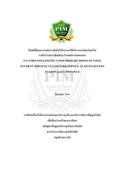 Other title: - Factors influencing consumers' decisions of using payment services via counter service at Seven-Eleven in Khon Kaen province