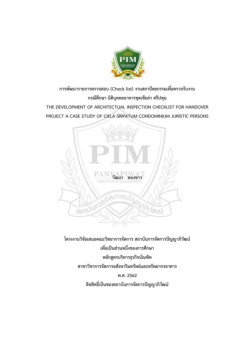 • THE DEVELOPMENT OF ARCHITECTUAL INSPECTION CHECKLIST FOR HANDOVER PROJECT A CASE STUDY OF CIELA SRIPATUM CONDOMINIUM JURISTIC PERSONS