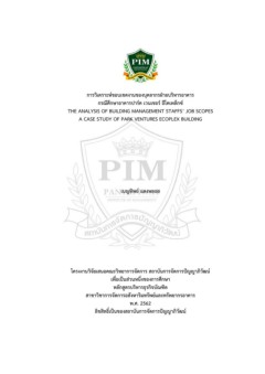 โครงงานวิจัย การวิเคราะห์ขอบเขตงานของบุคลากรฝ่ายบริหารอาคาร กรณีศึกษา อาคารปาร์ค เวนเชอร์ อีโคเพล็กซ์ by