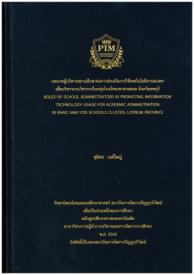 Dissertation note: การศึกษาค้นคว้าอิสระ (ศษ.ม.(ภาวะผู้นำการบริหารและการจัดการการศึกษา)) -- สถาบันการจัดการปัญญาภิวัฒน์, 2561