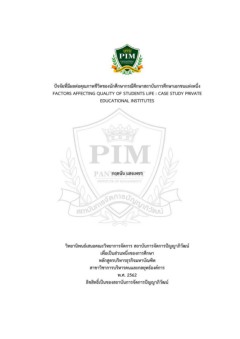 ปัจจัยที่มีผลต่อคุณภาพชีวิตของนักศึกษากรณีศึกษาสถาบันการศึกษาเอกชนแห่งหนึ่ง / กฤตนัน แสงเพชร by
