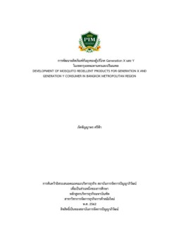 Other title: - Development of Mosquito Reoellent Products for Generation A and Generation Y Consumer in Bangkok Metropolitan Region