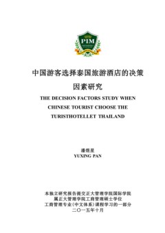 The decission factors study when chinese tourist choose the turisthotellet thailand Pan, Yuxing by