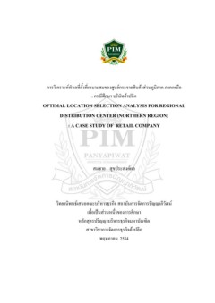 การวิเคราะห์ทำเลที่ตั้งที่เหมาะสมของศูนย์กระจายสินค้าส่วนภูมิภาค ภาคเหนือ : กรณีศึกษา บริษัทค้าปลีก / สมชาย สุขประสงค์ผล by
