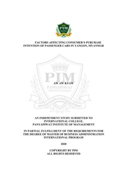 Factors Affecting Consumer's Purchase Intention of Passenger Cars in Yangon, Myanmar Aw Aw Kyaw by