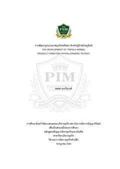 การพัฒนารูปแบบยาสมุมไพรตรีผลา สำหรับผู้ป่วยโรคภูมิแพ้/ by