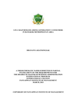 3-IN-1 SOAP DEMAND AMONG GENERATIONY CONSUMERS IN BANGKOK METROPRLITAN AREA by