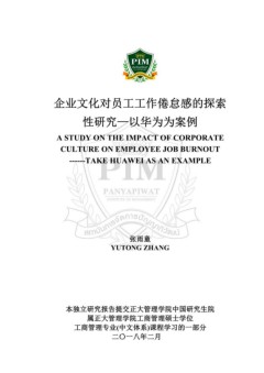 A study on the impact of corporate culture on employee job burnout __take huawei as an example by